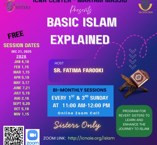 The ICNA Sisters’ division offers Islamic education and empowerment to women. It provides education and organizational skill training to help women understand and practice their faith within their communities.